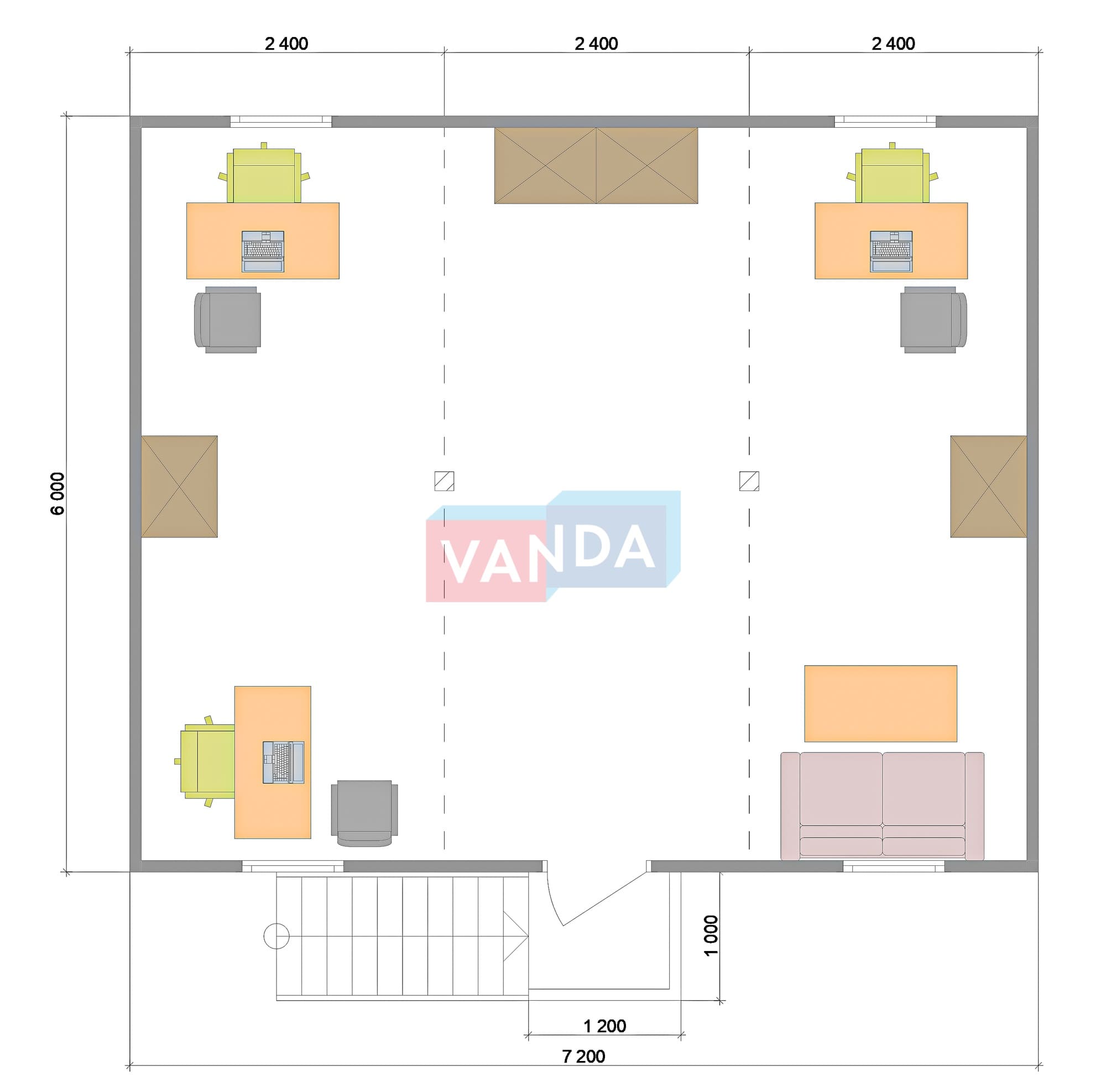 Модульная бытовка с плоской крышей 7.2x6.0 7.2x6.0 43.2 OSB 9 мм. Оцинкованный профлист 650 000 р. Уточняйте у менеджера